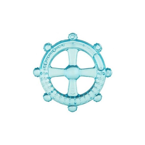 Śliczny gryzaczek w kształcie niebieskiego steru wypełniony chłodną wodą. Posiada on wypustki, które przyniosą ulgę podrażnionym dziąsłom Twojego Maluszka. a dzięki dużemu otworowi pośrodku jest wygodny do chwytania przez małe rączki.