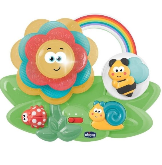 Posiada miękkie, różnokolorowe płatki kwiatka o różnych teksturach rozwijających zmysł dotyku.