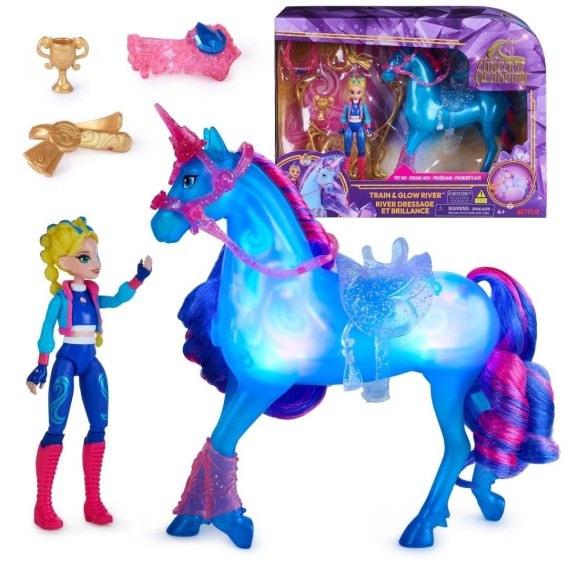 Odkryj wyjątkową więź między Isabel, a jej jednorożcem dzięki zestawowi Akademia Jednorożców: Isabel i Wirek z efektami świetlnymi. Zainspirowany serialem NETFLIX oraz lubianą serią książek, zestaw zachęca do tworzenia własnych historii i rozwijania wyobraźni. Lalka Isabel o wysokości 11,4 cm ma precyzyjnie odwzorowane detale oraz 7 punktów zgięcia, dzięki czemu można ustawiać ją w różnych, dynamicznych pozach. Półprzezroczysty jednorożec Wirek rozświetla się podczas zabawy gdy poprowadzisz go przez obręcz treningową, jego ciało zacznie delikatnie świecić (3 baterie LR44 w zestawie). Efekt światła można także włączyć w dowolnym momencie, naciskając kryształowy element na napierśniku Wirka. W komplecie znajdują się również akcesoria, w tym trofeum dla Isabel oraz medal dla Wirka, które podkreślą ich wspólny sukces. Aby poszerzyć świat Akademii Jednorożców i bawić się z ulubionymi bohaterami, poszukaj również innych małych lalek i jednorożców (zestawy sprzedawane osobno). Zabawki Akademii Jednorożców to świetny pomysł na prezent dla dzieci, które lubią jednorożce i konie, lalki z akcesoriami, zabawy w domek, kolekcje figurek, pluszaki i wiele więcej.