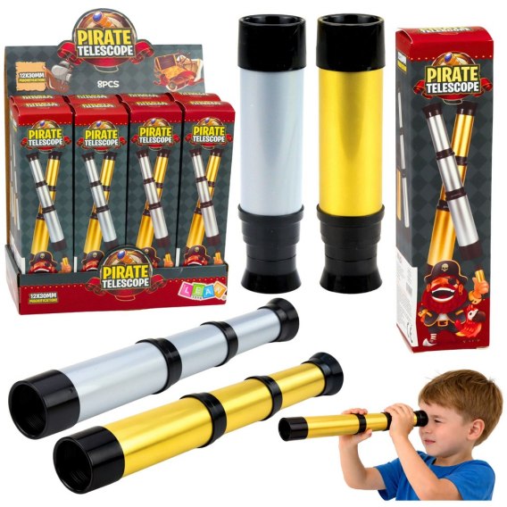 Luneta piracka teleskop 12 x 30 mm to doskonały gadżet dla małych odkrywców, miłośników przygód oraz zabaw tematycznych w piratów. Regulowana konstrukcja pozwala na wysuwanie i składanie lunety, co nadaje jej realistyczny wygląd