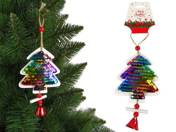 Świąteczna Choinka z Cekinami Dzwoneczek Ozdoba Na Choinkę